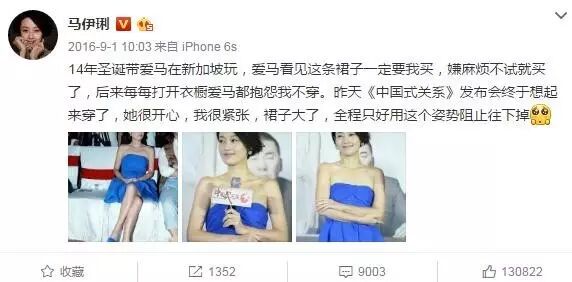 之后马伊琍在微博回应,这件衣服是14年女儿爱马让她买的