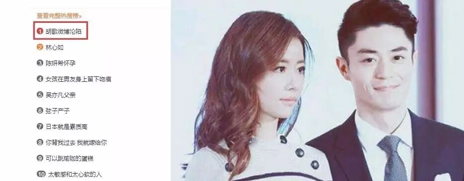 因霍建华和林心如公布恋情胡歌再次登上热搜