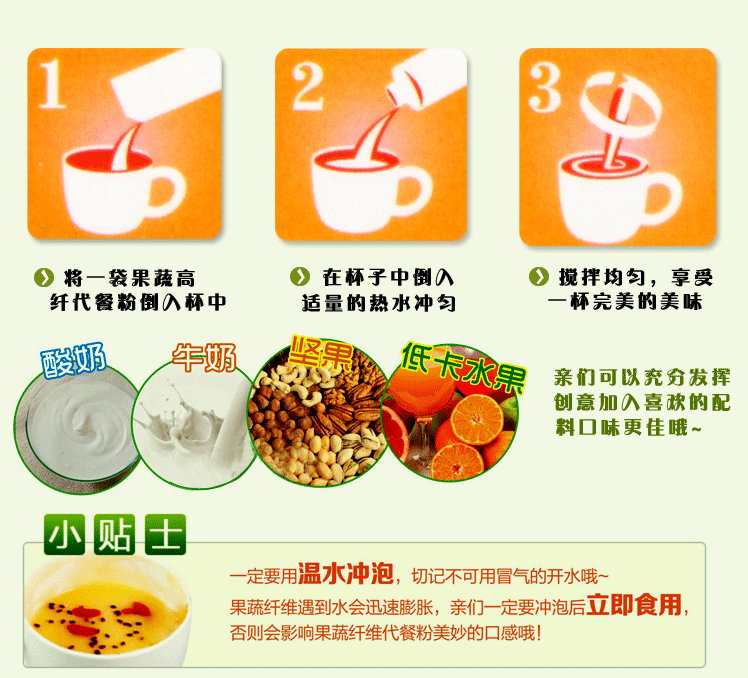 很多朋友担心晚餐吃的好容易发胖,而不吃晚餐怕营养不够。爱美丽的你可以一举两得,就用郑多燕代餐粉替代晚餐吧!饱享一餐美味,却只摄入30~50卡路里的热量。富含维生素、蛋白质、矿物质群还很好喝哦!