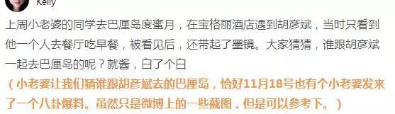 近日,爆料胡彦斌现身巴厘岛度假,被发现后,还戴起了墨镜~这位网友还故作神秘的让网友们猜猜和斌斌一起度假的人是谁?