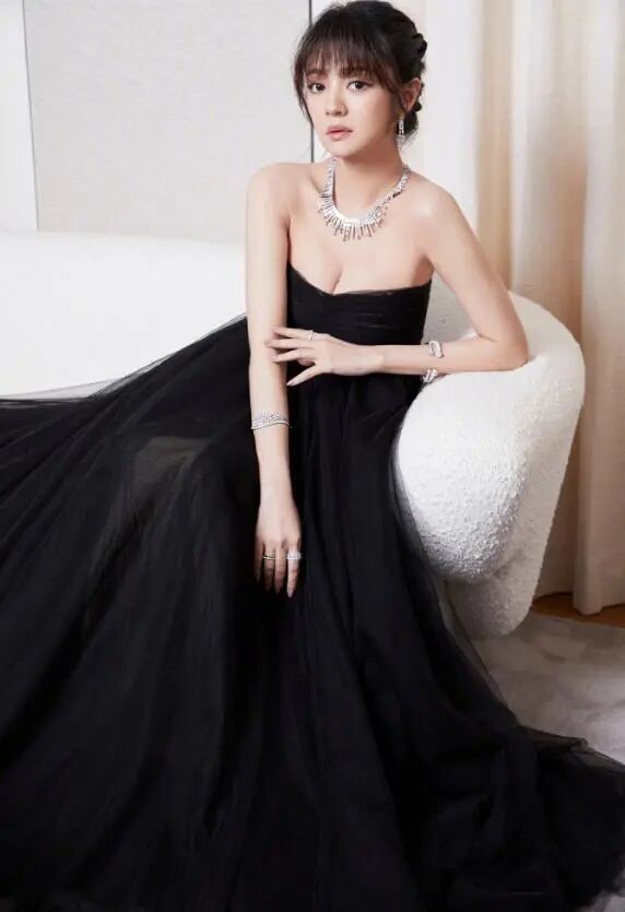 安以轩的长相就有一种名媛风。身穿黑色网纱设计的裙子,不仅非常仙,而且阔太风十足。低胸露肩的设计非常前卫,精致的锁骨以及修长的天鹅颈都得以展现,微微袒露的胸部也是十分性感。黑色网纱大片裙摆,仙气十足,十分有气质,整个人也是十分温柔。脖间的空荡搭配钻石项链,贵气十足!