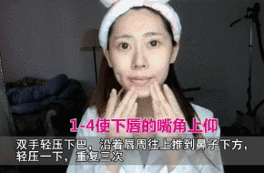 双手轻压下巴,沿着唇周往上推到鼻子下方,轻压一次,重复三次。