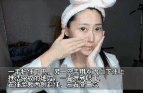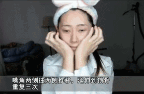 要用手掌从下巴两侧往外推,推到脸颊再往两侧延伸至锁骨。