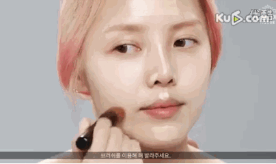 打好高光后,再用刷子轻轻的推开来。注意是从内往外推开,以鼻子为中心,脸颊两侧向外,额头向上,下巴往下推,这样效果更明显哦~