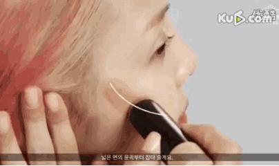 每个动作完毕之后都要做这个动作,脸颊两侧靠近耳朵的地方有凹陷处。轻压在正下方推向锁骨位置,重复三次。