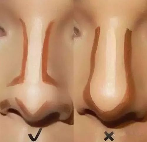 也要注意到画的手法,这样才能凸显出我们的鼻型。从眉头开始,往旁边和下面画,类似一个倒八字一定要和眉毛连接在一起,并且往眼窝延伸,这样看起来才会深邃!