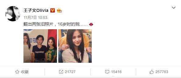 昨天上午,王子文在微博上po出了自己16岁时的旧照,并配文写道:“翻出两张旧照片,16岁时的我……”看到照片的海豹君不禁大吃一惊,这还是Wuli曲妖精吗?
