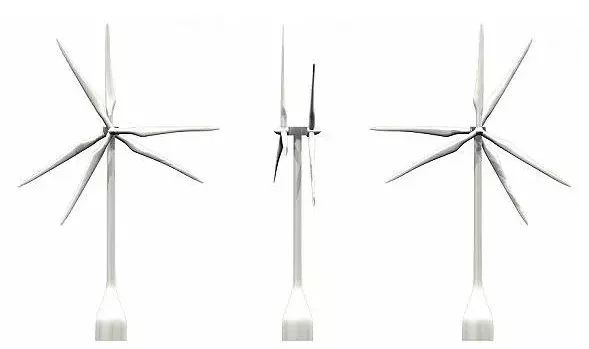 运转原理:风塔式涡轮机拥有大而薄得螺旋桨转子,其垂直的螺旋桨用来旋转发电。