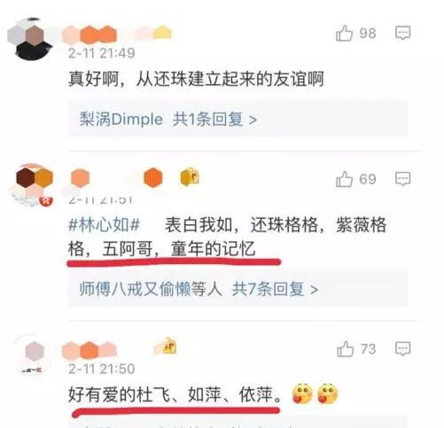 不少网友留言称:“好有爱的杜飞、如萍、依萍。”“还珠格格,紫薇格格,五阿哥,童年的记忆。”“真好啊,从还珠建立起来的友谊啊。”