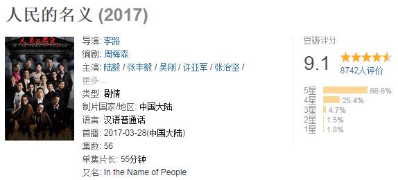 这其实是一个很悲伤的故事,《人民的名义》豆瓣评分从7.9飙到了9.1,口碑一路走高,然而男主陆毅却不幸的成为了唯一的bug。