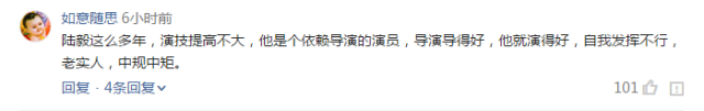 网友对陆毅的演技,褒贬不一,有的认为不适合,有的认为不怎样,更多的则是需要有待提高。