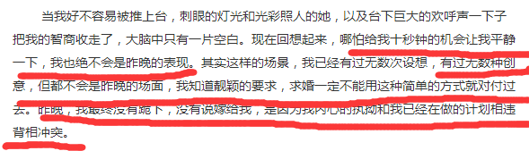 后来还发表了一篇长微博,说自己是没有准备好,才会出现昨天那一幕。