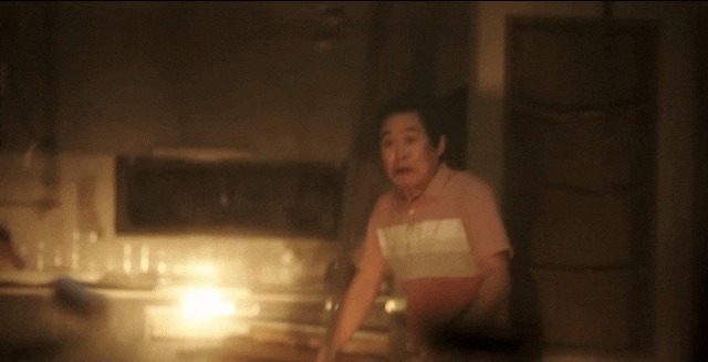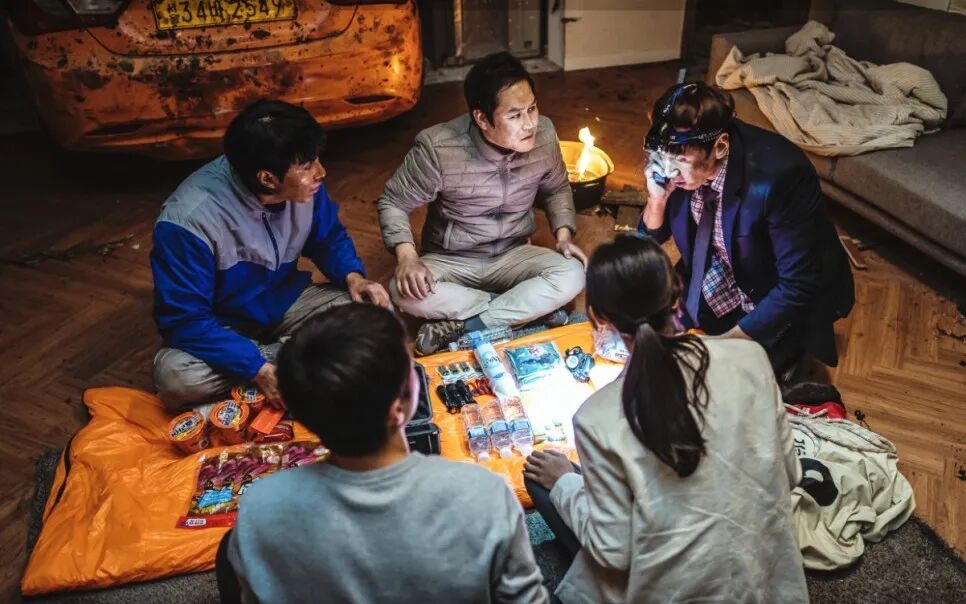 经过11年的努力实现了“在首尔置办自己家”目标的东元和来乔迁宴的公司同事金代理,在乔迁宴第二天宿醉的余劲未退之前,就这样掉进了水洞中。东元本以为乘坐出租车离开的金代理有幸避免了事故,但运气极差的他连朋友的婚礼都没来及去就直接坐着出租车回到了联排住宅。与金代理重逢的东元急忙开门,但手柄却被砸坏,只剩下焦急的心情。金成钧选择了两人以惊人的Sense和爆发力诞生的这一即兴表演场面作为经典场面。而在这场巨大灾难中,最能体现紧迫感和角色之间愉快感的这一画面,在电影前半部分也确实给观众带来了稍显舒缓的笑容。