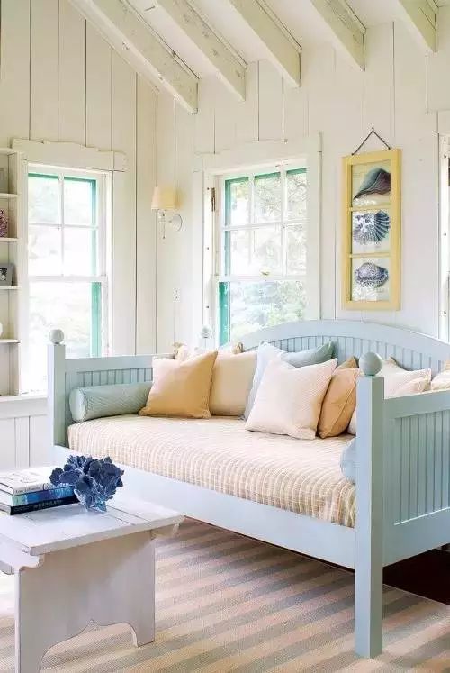 如果你的家里整体色系是一片白,那么加入 一两个粉蓝色单品的点缀,一个木偶,一张小床,能够营造出一种梦幻般的感觉。