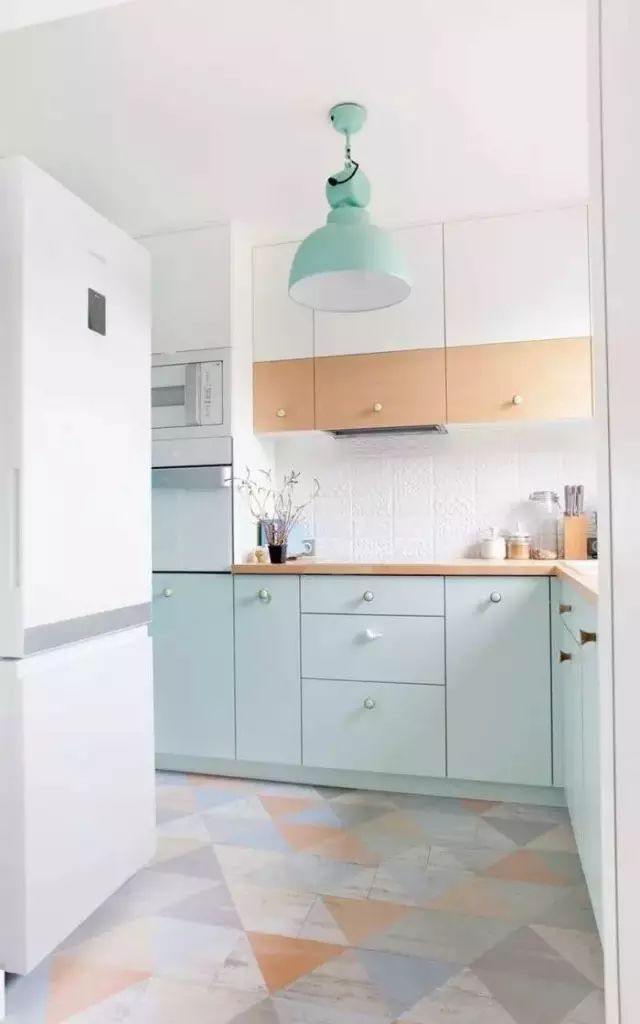 不需要把整个家都变成童话世界,毕竟我们还生活在现实空间,只需要加入一些粉色系的点缀,粉色橱柜为厨房引入柔和光线,让厨房的感觉明亮,干净,温馨和乐趣。