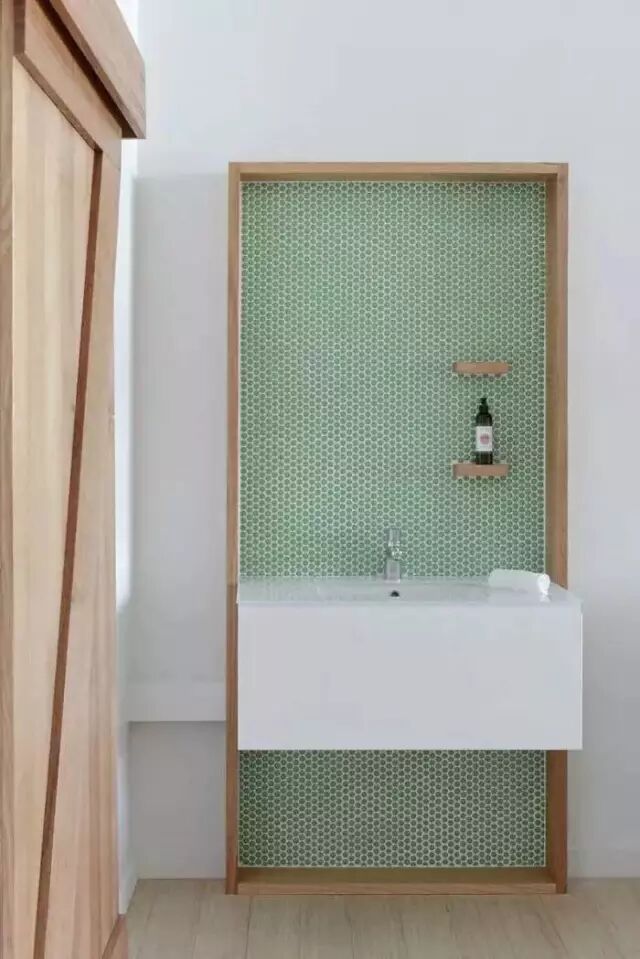 柔和色彩的瓷砖,是很棒的背景,利用在厨房或浴室中,让原本功能性的空间,变得更有活力和情调。