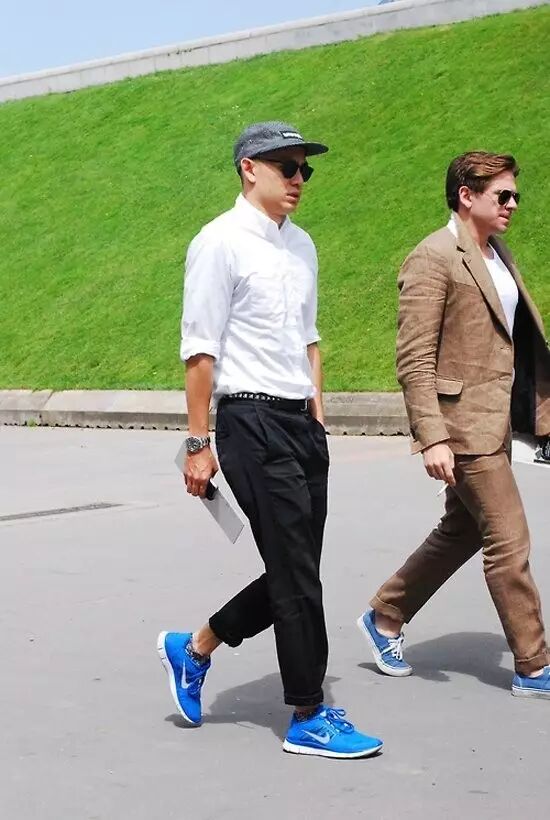 将球鞋和休闲鞋混搭到各种风格中,正装或街头风格中