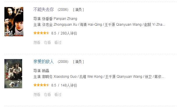 他演过的大多作品,在豆瓣都获得很高的评价。