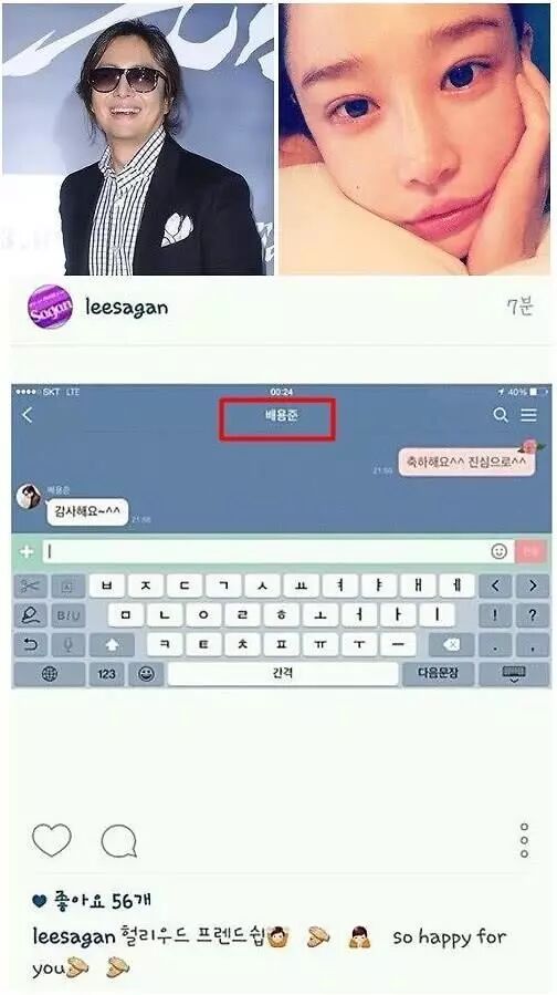 在裴勇俊与朴秀珍的婚讯曝光后不久,作为前女友李思江更是大方地送上了祝福,并在个人INS上公开了发给裴勇俊的聊天截图,称此为“好莱坞级友情”。虽然后面因有人说她是借机炒作,截图被她删除了。不过这样的祝福也是在表示李思江是真的对这段感情放下了。