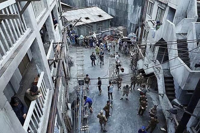 为了重现当时的军舰岛,影片的美术指导李厚京画了3个设计,经过6个月时间,在江原道春川13.2万平米的空地上,建造了6.6万平米的前所未见的超大型摄影棚。