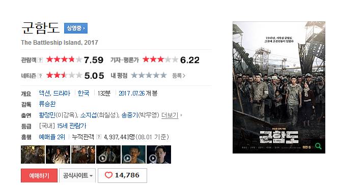 而且影片的故事也非常具有煽动性,很符合观众的爱国心理(从内地最近上映85小时票房便破10亿的《战狼2》,以及14年韩国影史票房冠军《鸣梁海战》可验证),所以说,这部电影的票房想不炸裂都难。