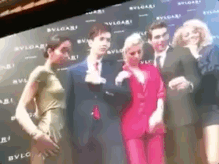 最后这位女士放了个大招,居然把肩都靠在凡凡身上了,可是凡凡依旧酷到没朋友↓