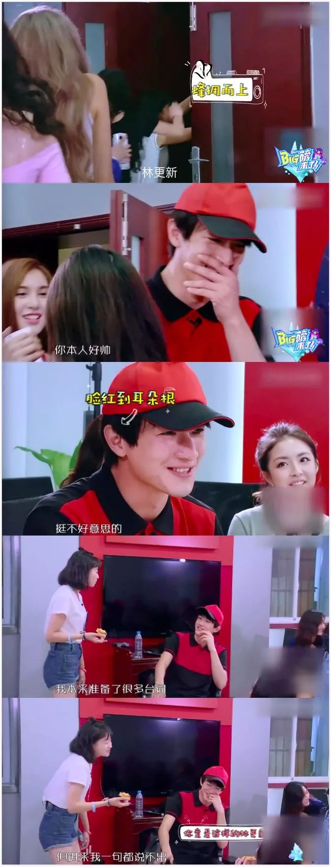 同为害羞派的林更新,虽然平时画风相当的放纵不羁爱自由↓