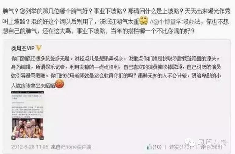 而在微博火了以后,周杰的阵地也从天涯、博客转移了过来。大概是因为交流方式更直接,所以周杰的“直率”也就更袒露无遗:遇到媒体不实报道,他开口就骂!