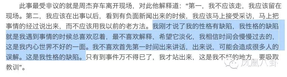 事后周杰说:我承认性格有缺陷,怕事情扩大所以没解释……