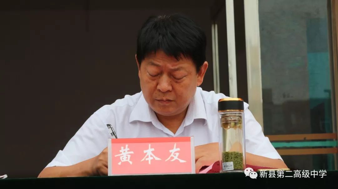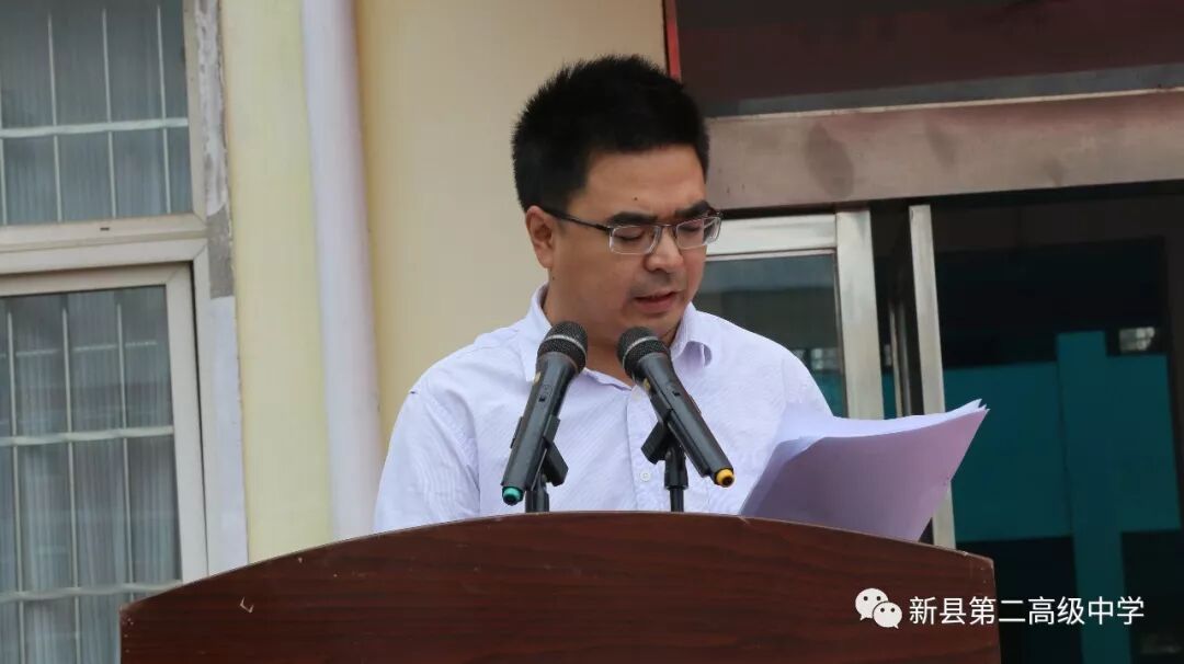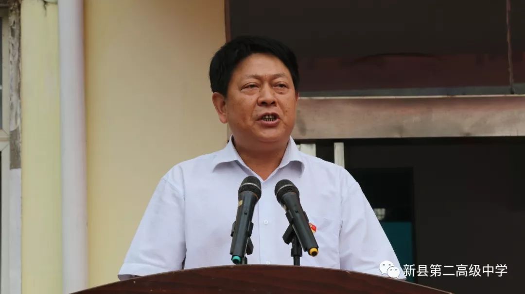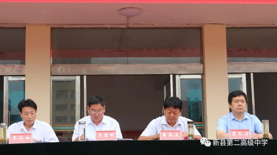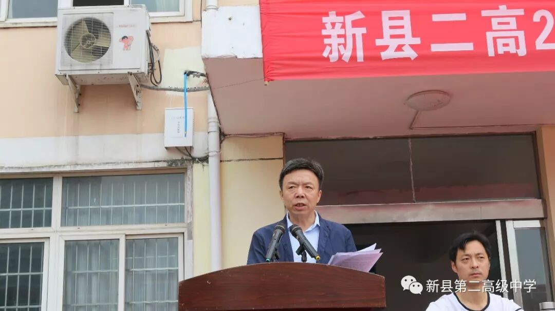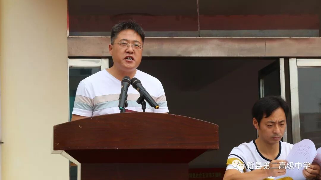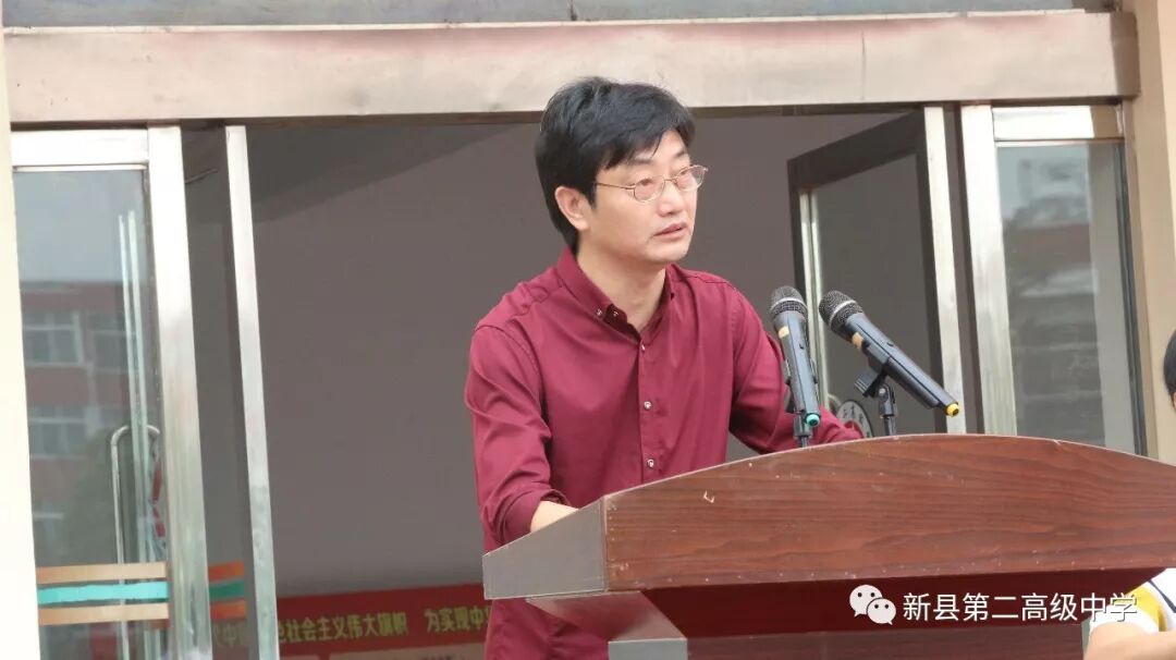 新县教育体育局党组书记、局长黄本友发表重要讲话,对学校新学年工作提出了具体要求和殷切期望。一是希望学校强化管理不放松。二是希望教师加强学习不懈怠。三是希望同学们追梦不停步。他要求二高总结经验、增强加快发展、再创佳绩的历史责任感和时代紧迫感,要求全体教师振奋精神、团结拼搏、努力工作、全面提高教育教学质量,希望全体学生珍惜时光、勤奋学习、立志成才,不辜负领导、学校、家庭和社会的厚望,争创新的更大成绩,将新县二高建成省市一流高中、河南省特色发展示范学校。