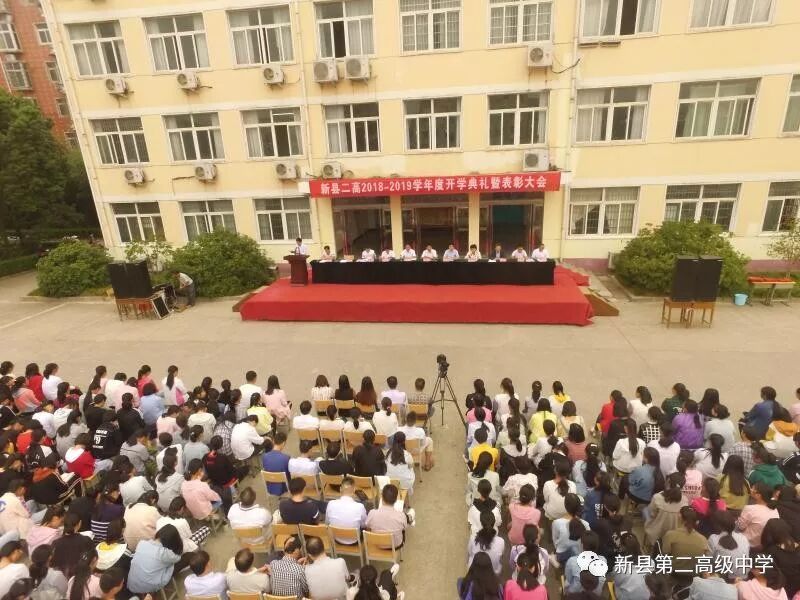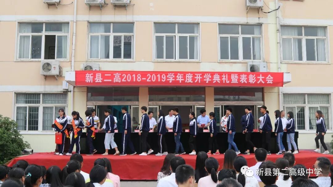 收获时节,金风送爽,丹桂飘香,硕果累累,9月12日上午,新县第二高级中学在文心楼前隆重举行2018至2019学年度开学典礼暨表彰大会。新县教育体育局党组书记、局长黄本友,县教体局副局长夏长宗,县教体局机关党委副书记华伦如以及学校4400多名师生员工参加大会。大会由校党总支书记肖军老师主持。
