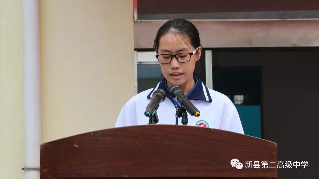 高一新生代表16班陈新莲同学在开学典礼上发言