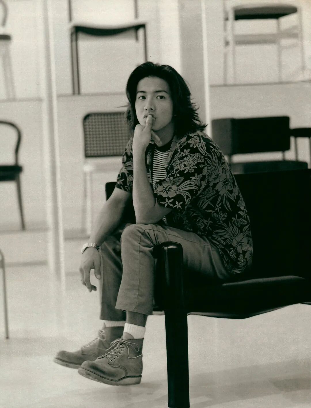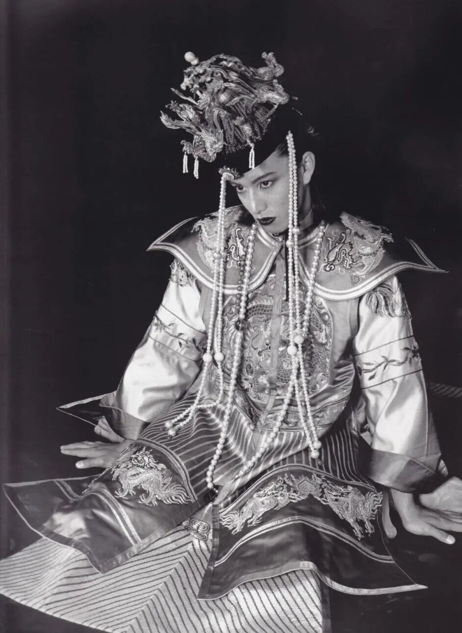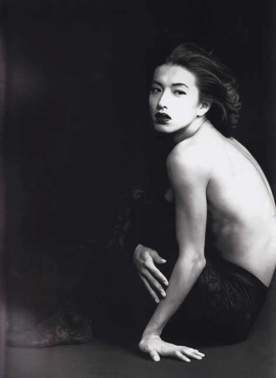 就在演艺事业如日中天的时候,木村拓哉没有通过经纪公司杰尼斯事务所,而是以父亲名义注册的个人事务所出版了同名写真集《木村拓哉》。这本由风格大胆独特的摄影师横须贺功光操刀的写真集大部分拍摄于中国香港,木村拓哉在其中展现了多款前卫的女装造型,或戴上朦胧黑纱换上黑色长裙,或浓妆艳抹身着华丽的宫廷服饰。精致的五官、完美的头颅和长发造型本就让木村拓哉拥有多变的性别气质,女装扮相放大了身上的阴柔,在横须贺功光的镜头下他美得雌雄莫辨。同时,这本写真集也让王家卫看到了木村拓哉身上的可能性,并于次年邀请他拍摄电影《2046》。