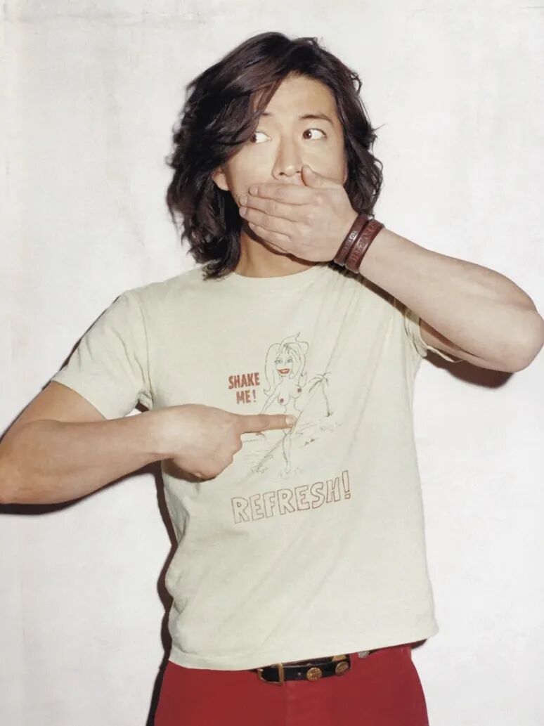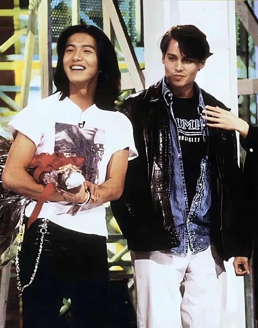 木村拓哉和 Johnny Depp 一直被称为娱乐圈里最爱穿古着的明星,而这两位古着发烧友也曾在 1995 年同台相见。当时木村拓哉在综艺节目上碰到了来到日本宣传电影《离魂异客 Dead Man》的 Johnny Depp。Depp 叠穿牛仔和皮衣的穿搭在今天看来都十分时髦,而木村拓哉在一旁毫不逊色——简简单单的古着印花白 T 搭配饰以银色链条的黑色皮裤,及肩的长发蓬松飘逸。