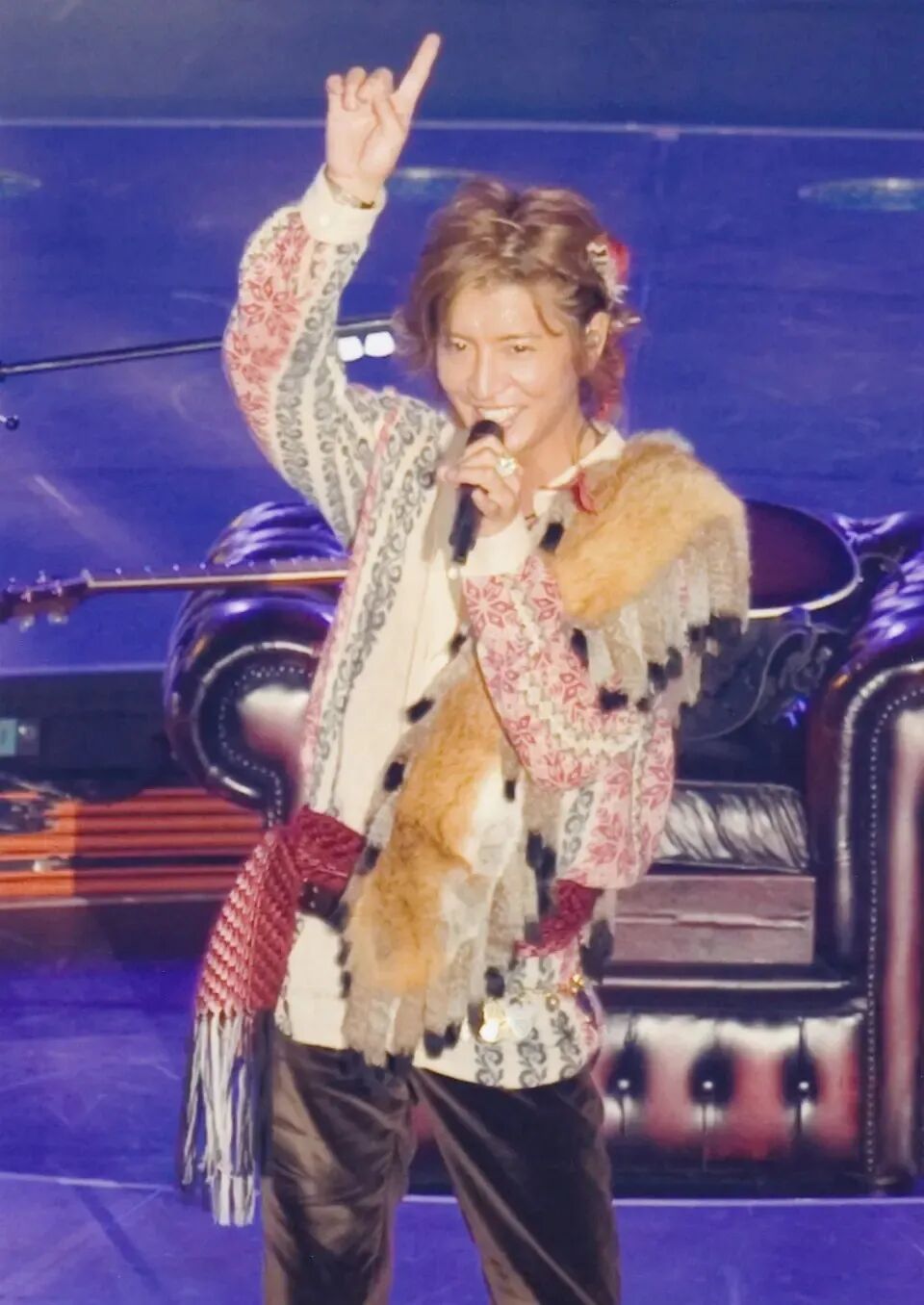 在 2008 年秋天,木村拓哉随组合 SMAP 举行了巡回演唱会。在演唱歌曲《あなたのためにできること》时,他穿了一身印第安色彩的服装,发梢编入了标志性的羽毛——木村拓哉的服饰里常常出现羽毛的影子。比如他最爱的 goro’s 羽毛银饰,创始人高桥吾郎专门去到美国当地的印第安部落习得银饰的打造方法,每一件作品都是手工制成。