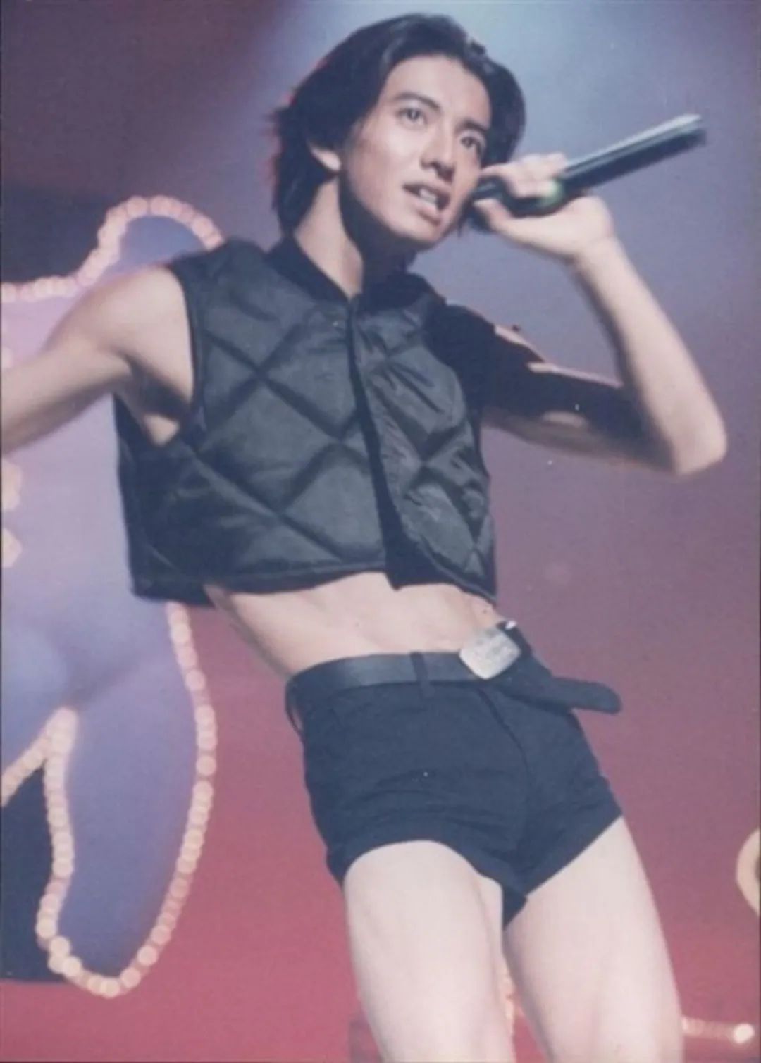 1993 年,木村拓哉出演大火剧集《爱情白皮书》,凭借剧中「取手治」一角获得了 TV Guide 和 TV LIFE 的年度日剧大赏最佳男配角。个人的成功也带火了团队,SMAP 在来年终于迎来了组合的第一个 ORICON 公信榜一位,在 1994 年 11 月 11 日成功举办了 SEXY SIX SHOW 演唱会。在舞台上,木村拓哉穿着露腰的黑色羽绒马甲和紧身黑色短裤劲歌热舞,露出手臂的肌肉线条和蜜色的腹肌,浑身上下流露出血气方刚的荷尔蒙和无畏无惧的少年气。