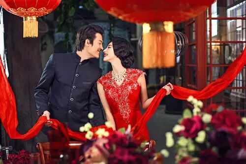 选择新中式风格婚照的新娘最好是长发,以方便做中式造型。短发新娘如果也想拍古装造型,一定记得提前和化妆师沟通,因为短发做造型更花费时间。