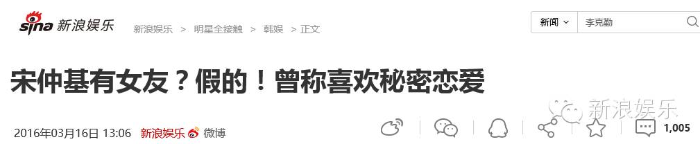 前两天还说宋仲基有女友呢!还没等我哭呢,这条新闻同样被否认了!