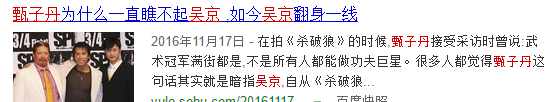 听闻此事的吴京当时就无语了,之后俩人也再无合作,在吴京自筹拍摄《狼牙》时,还有媒体曾问吴京:知道甄子丹最近比较火的《叶问》吗?