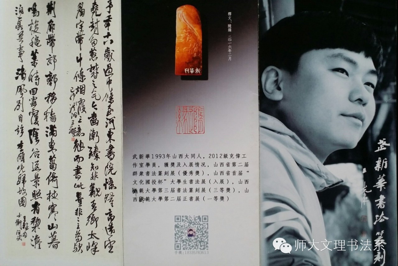 岁逢已未,季在孟冬。毕业展览以后,余兴未尽。我同窗四友,欲举办书法展,但又恐之陋作,不敢面于众。偶然与黄玉岩老师聊天,谈及此事,师赞成。故于2015年11月底开始准备作品。