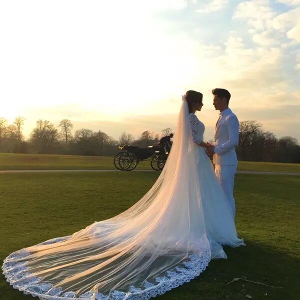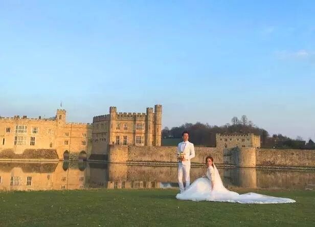 据悉,杨怡和罗仲谦是在英国注册结婚的,他们还在英国肯特郡利兹普城堡拍摄了婚纱照。在古堡前,新娘杨怡披上白色低V婚纱,而罗仲谦则以一身白马王子的造型现身,画面复古典雅,充满爱意。