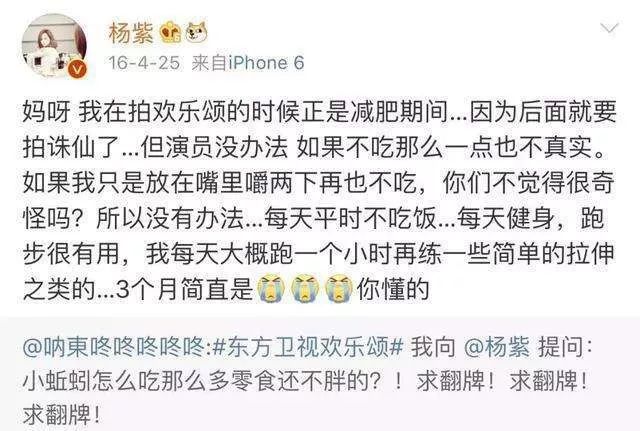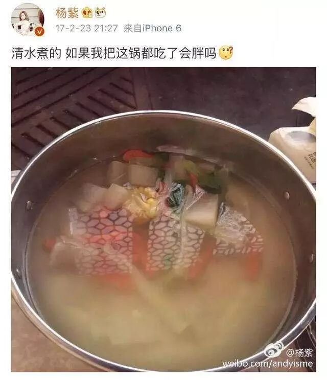 ▲在饮食上杨紫也很有节制,吃清水煮的汤,不加油不加任何调味料,非常热爱美食的她竟然也坚持了下来。