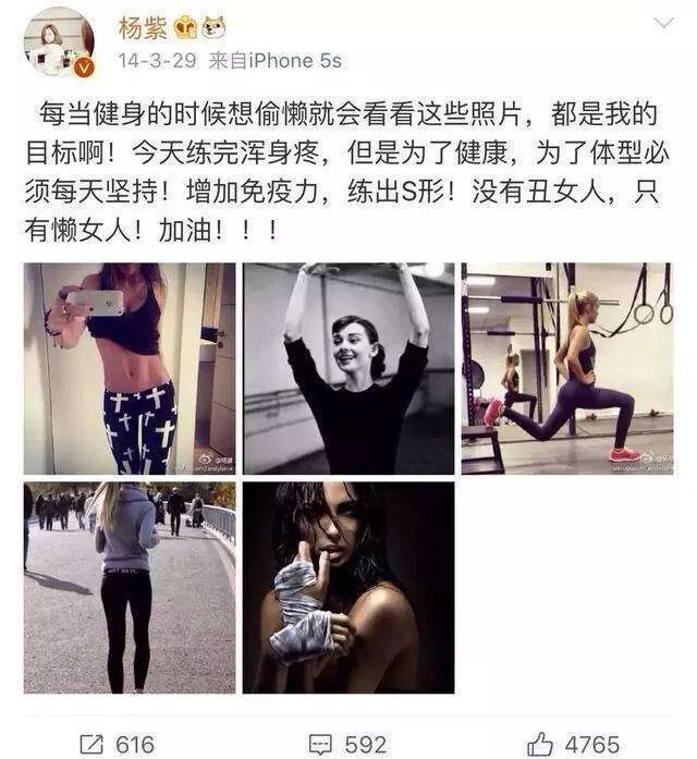 ▲在减肥路上杨紫一直没有停止过,各式各样的瘦身办法她基本都尝试过,为了健康为了体型,即使锻炼到浑身疼她也不放弃。