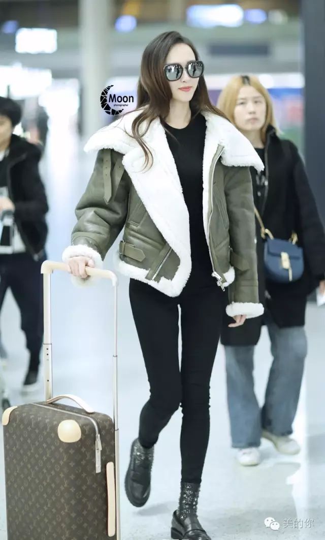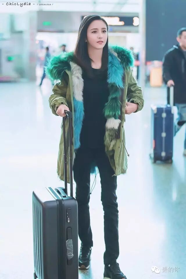 佟丽娅的这件连内胆都有毛毛,搭配铅笔裤和长靴,让腿显得愈加纤细!