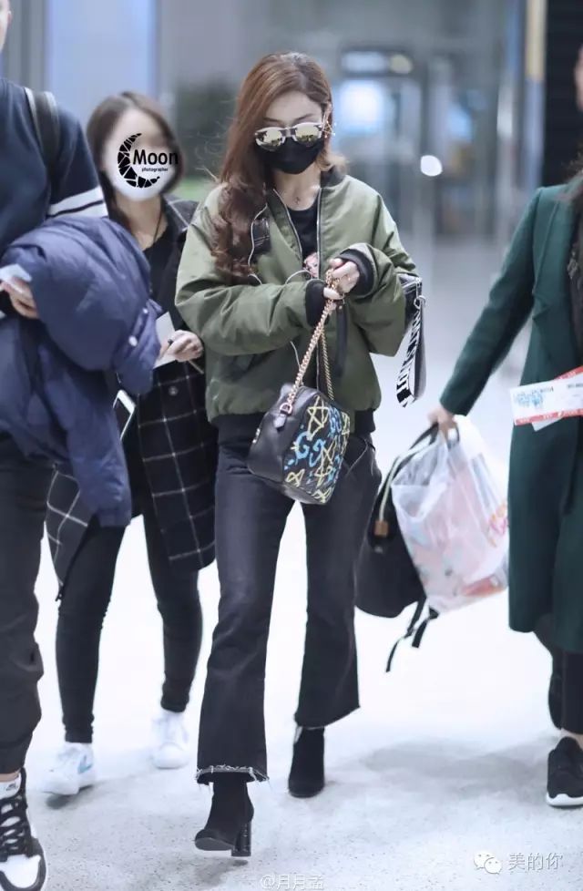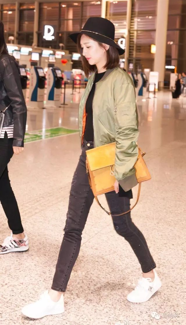 赵丽颖则用短款飞行员夹克搭配微喇牛仔裤,wuli美颖侧颜太好看啦!