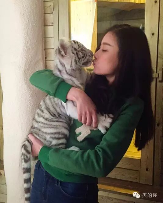 肤白貌美的喵总穿绿色卫衣清新又活泼~
