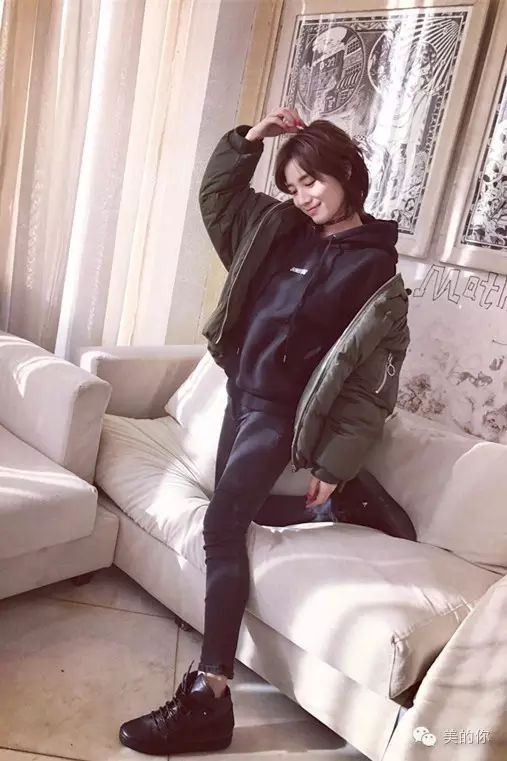 宋佳微博最近po出的这一身私服,黑色卫衣和军绿色羽绒服都来自韩火火的品牌DO NOT TAG,黑色高帮球鞋也是超帅哒!
