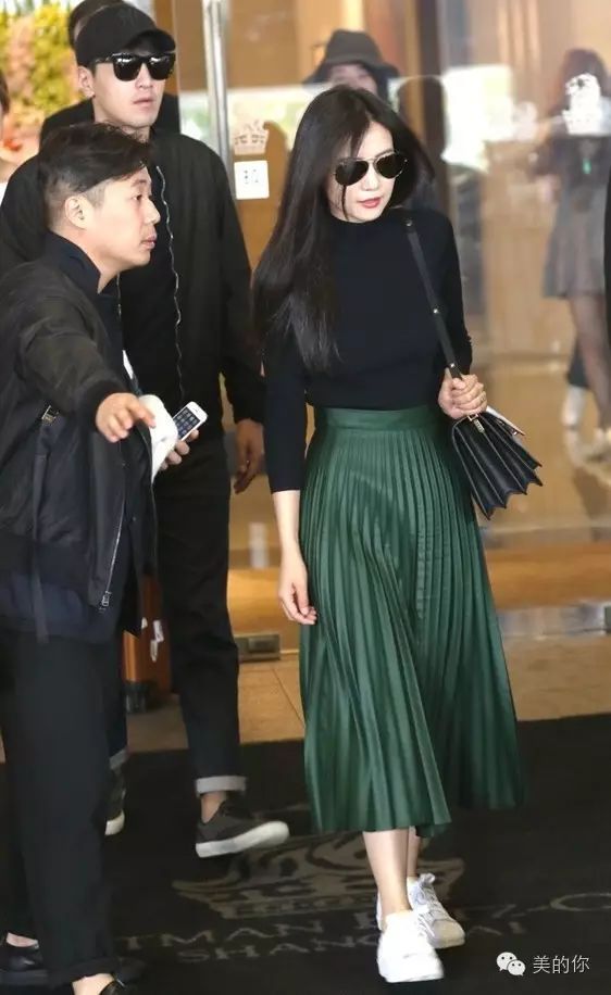 除了服装,你也可以像大幂幂一样选择绿色的包包或围巾来为自己的造型增添点睛之笔。