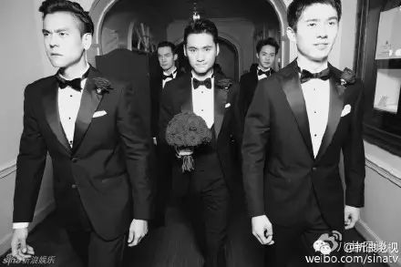 先来看看这场婚礼的高颜值伴郎们:马天宇、彭于晏、刘浩然、胡歌!