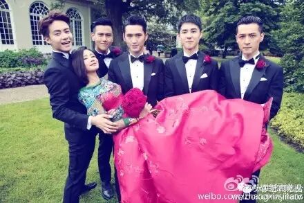 跟拒这张照片,伴郎的颜值。。。有些堪忧啊,也就一个杜淳能看了